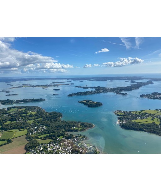 Départ aéroport Vannes, vue sur la ville de Vannes > survol du Golfe du Morbihan, survol de l'île au Moine et l'île d'Arz > vues sur la presqu'île de Rhuys, vues sur Port Navalo / Sarzeau > retour à Vannes.